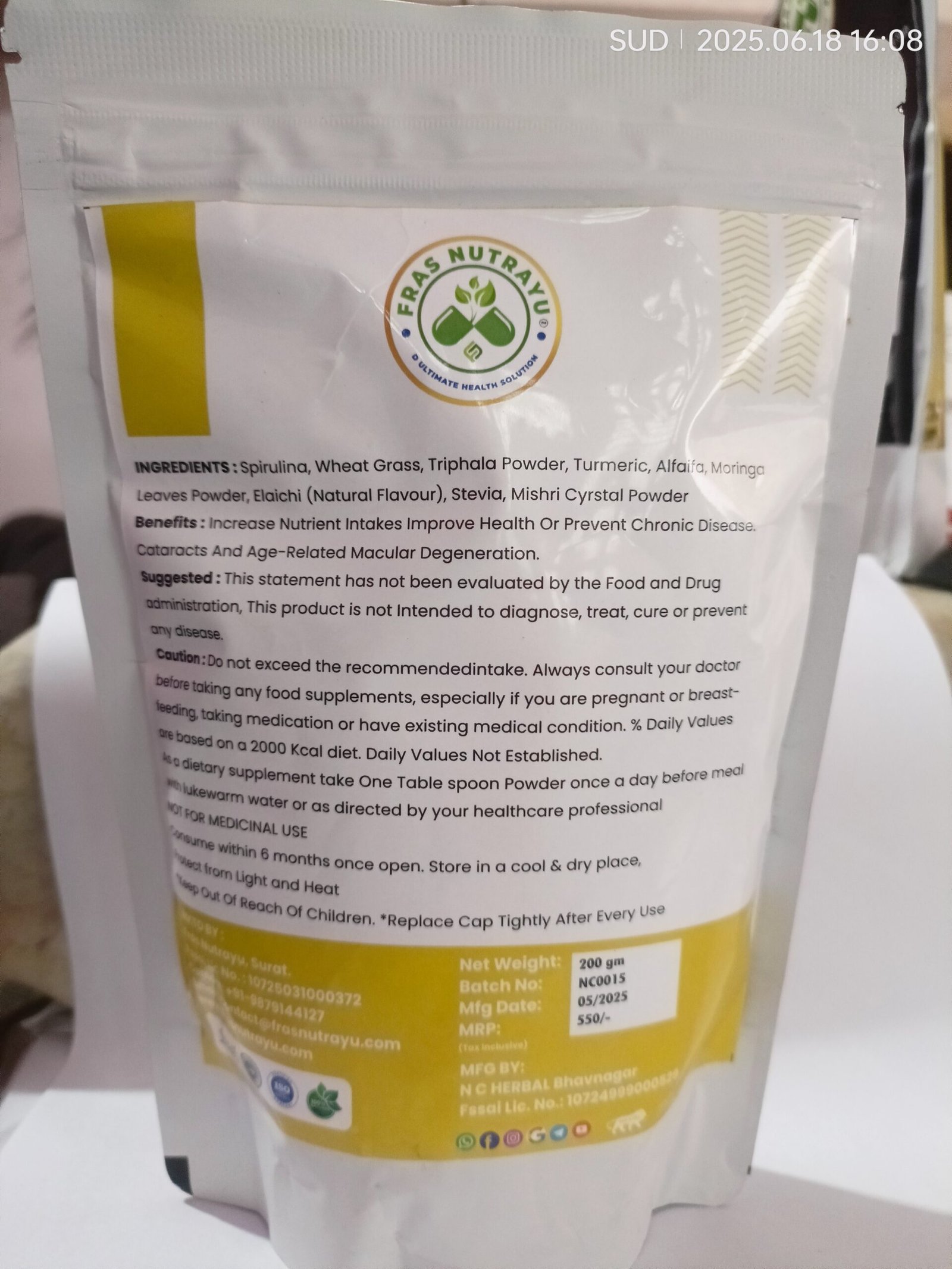 Fuel your body with the pure power of greens and essential Vitamin B12  all in one scoop. Fras Nutrayu Vitamin B12 Green Powder is a carefully crafted, plant-based superfood formula designed to support your energy, immunity, digestion, and overall vitality.