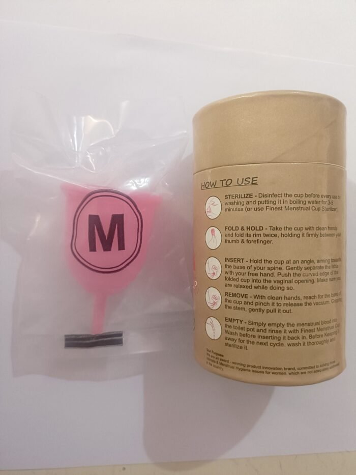 - Sterilize the cup using a Menstrual Cup Sterilizer or by boiling it in water for 5-7 minutes.